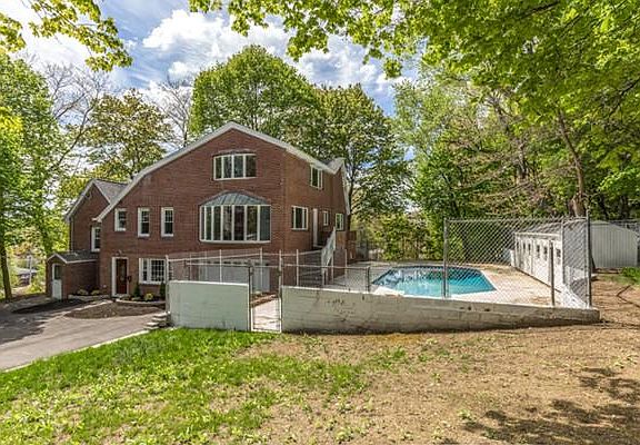 This Brick front home is a unique offering and has been renovated throughout. Very flexible floor plan with a 4,000+s.f. of living space. Large front - back LR/DR with gas fireplace and dining area. Roomy kitchen offers cherry cabinetry, center island, 30' of counter space, pendant lighting & stainless appliances. Just off the kitchen is a 25 foot 3 season porch a full bath and laundry with new washer/dryer. Grand staircase with beautiful chandelier leads to upper level. Large master suite with deck. and 3 additional bedrooms. One bedroom has a spiral staircase leading to loft area. Interesting potential for separate in law area as there is direct access from exterior. Large pool with new liner and outbuilding. This home is set on desirable Forbes Hill. Short walk to park & Furnace Brook GC. Quick access to highway and shopping. Please see video tour.