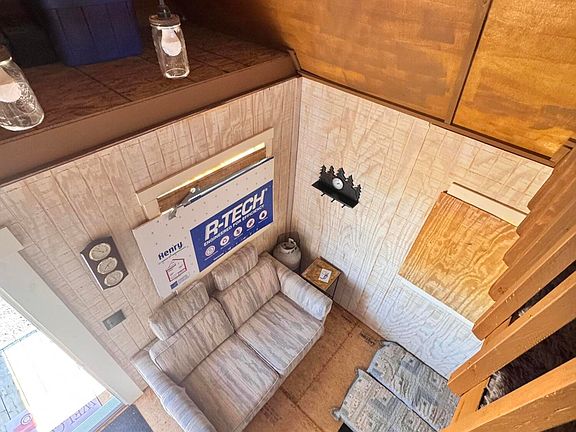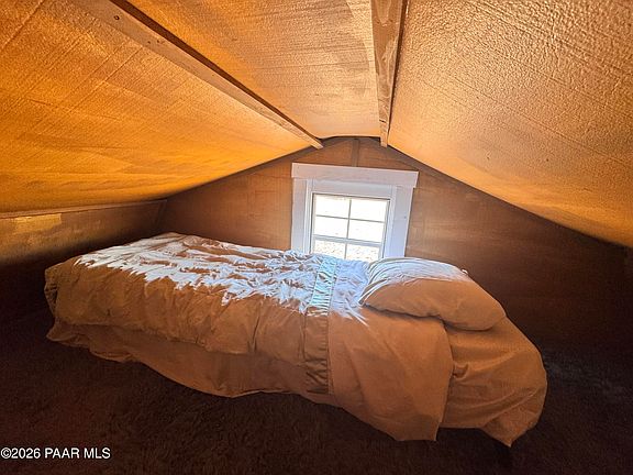 Fully deeded off-grid property originally part of Juniper Woods Ranch, offering a functional and well-developed setup for recreational or extended use. The property includes a solar-powered cabin with 12-volt and 120-volt power via a 4,000-watt inverter, featuring a sofa bed, dining area, propane heater, TV, dresser, and two lofts. A covered porch extends the living space. Also included is a modern camper trailer sleeping up to six with a queen bed and bunk beds. Kitchen and shower are supplied by four food-grade water totes totaling approx. 1,200 gallons. Improvements include multiple outbuildings, dry toilet in storage shed, open-air workshop with steel roof and mounted power tools, asphalted circular driveway, LED exterior lighting, 12-volt water pump, two large propane cylinders, TV antennas, and tower poles. Included with the property are a 4,000-watt gas generator and landscaping tools. Septic systems subject to Yavapai County regulations. Property is fully deeded and verifiable via Yavapai County records.