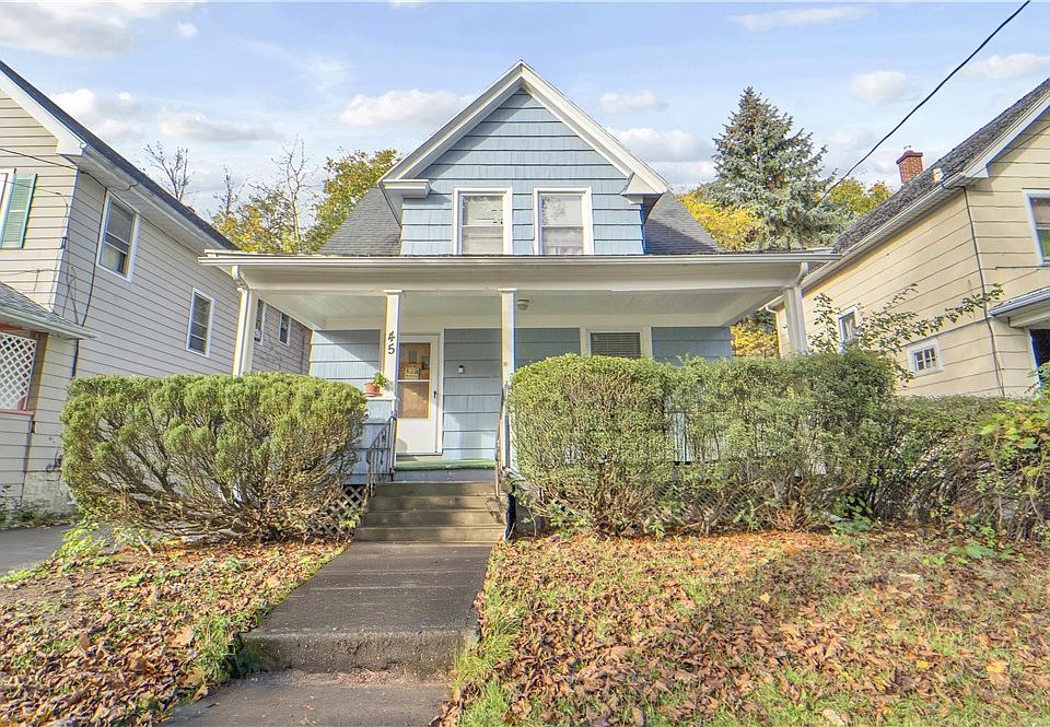 Welcome to 45 Newcomb St, located in the popular 14609 neighborhood. This nicely maintained home provides comfort, convenience and efficiency. The inviting front porch is a perfect place for relaxation and socializing while also offering an attractive entryway for your seasonal/holiday decorating. The traditional interior features a spacious Living Room, Formal Dining Room and Kitchen. Upstairs, you will find three well-proportioned bedrooms and one full bathroom. Functionality is enhanced by a full basement with glass block windows and a great walk-up attic for storage or future potential.