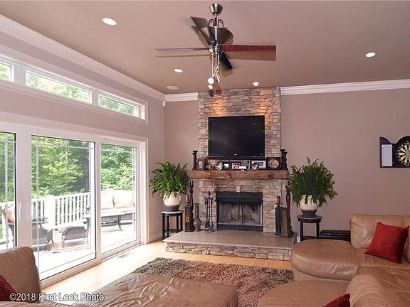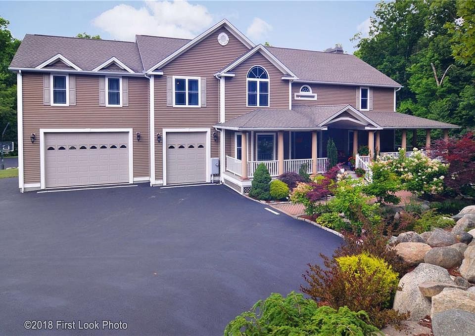 "The Builder's Home" Craftsmanship, amenities, upgrades, all here in this 12 room colonial/wrap around (entire house) porch offering 4,600 square feet of living. Inviting entry foyer leads to an open floor plan featuring wood floors through the entire house, a gourmet kitchen with center island that seats 8+, a dining area, wet bar complete with wine refrigerator, pantry closet and formal dining. Relax in the 16 X 16 - 4 season room overlooking private tranquil backyard. Have family gatherings in your 22 X 30 family room offering gorgeous stone fireplace, Surround-Sound theater system, sliders to deck. A stately staircase leading to second floor offers a private master suite with its own sitting area, theater system, his and hers walk in closets, very spacious bath with walk in tiled shower (6 shower heads) plus a Jacuzzi/soaking tub. Additional rooms are 2 very spacious bedrooms, private home office, and bonus room with additional theater system (currently used as 4th bedroom) and additional full tiled bath. Lower walk out level (already studded for additional rec. area and prep for additional bathroom). The grounds are exceptional too...dazzling matured landscaping, sports court, bocce court, hot tub, koi pond, three car garage and more...Phenomenal family home and perfect entertaining...Don't Delay Call Today!!!