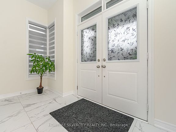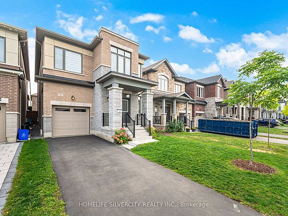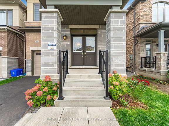 Welcome to this beautifully upgraded detached home, offering 2,150 sq. ft. of bright and functional living space. With a striking stone façade and covered porch, this residence showcases impressive curb appeal. Inside, soaring 9 ft. ceilings on both the main and second levels, paired with oversized windows, fill the home with natural light. The open-concept main floor features a welcoming family room and a gourmet kitchen with quartz countertops. A separate basement entrance and approximately $50,000 in upgrades add exceptional value. Upstairs, spacious bedrooms provide comfort and privacy, designed with today's modern family in mind. Outside, enjoy a large, fully fenced backyard-perfect for entertaining or quiet relaxation. Ideally located near Heber Down Conservation Area, shopping, new schools, and offering quick access to highways and GO Transit, this home blends elegance, convenience, and lifestyle.
