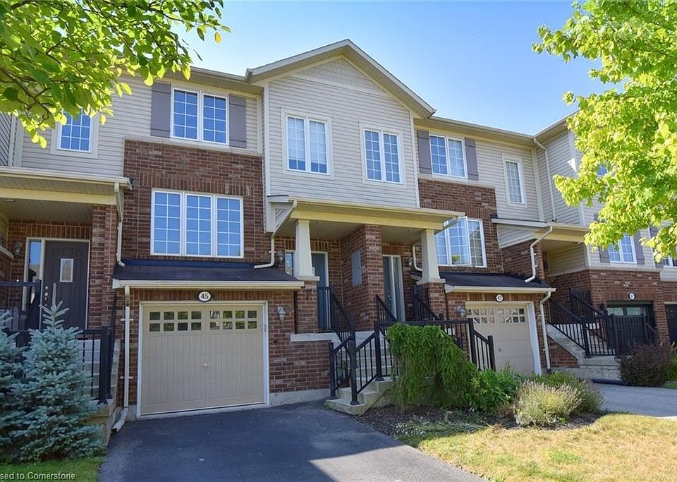 Opportunity Knocks! Welcome To 45 Ohara Lane, A Chic Freehold Street Townhome In Ancaster’s Meadowland, Steps To Parks, Schools, Redeemer University With Shopping, Eateries And Entertainment Nearby. Excellent Access To Highway 403 For Commuters! A Short Drive To . The Tasteful Yet Manageable Landscaping Adds To The Curb Appeal That You Will Enjoy Coming Home To. The Stairs To The Main Level Are Enhanced By The Iron Spindles. Here You Find The Bright Living/Dining Room With Hardwood Floors, A Perfect Space To Entertain Or Simply Kick Back And Relax. The Modern Kitchen Features Quartz Countertops And Backsplash And Stainless-Steel Appliances. Enjoy The Morning Coffee Or Casual Meals In The Bright, Spacious Dinette. The 2 -Piece Powder Room Completes The Main Level. The Upper-Level Features 3 Bedrooms, All With Engineered Hardwood Floors, And A 3 Piece Bath With A Huge Glass-Door Shower With A Rainfall Showerhead. The Lower Level Offers The Family Room With Hardwood Floors And A Walk Out To The Fenced Rear Yard. Also On The Lower Level Is The Laundry/Utility Room, A Storage Room Plus Direct Access To The Garage With A Door Opener. Both The Furnace And Central Air Are Owned. This Carpet-Free Home Has Been Freshly Repainted Making It Move-In Ready For You!