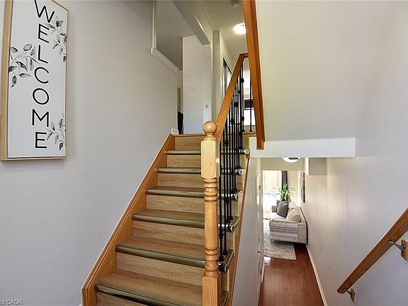 Opportunity Knocks! NO ROAD FEES! Welcome To 45 Ohara Lane, A Chic Freehold Street Townhome In Ancaster’s Meadowlands, Steps To Parks, Schools, Redeemer University With Shopping, Eateries And Entertainment Nearby. Excellent Access To Highway 403 For Commuters! The Tasteful Yet Manageable Landscaping Adds To The Curb Appeal That You Will Enjoy Coming Home To. The Stairs To The Main Level Are Enhanced By The Iron Spindles. Here You Find The Bright Living/Dining Room With Hardwood Floors, A Perfect Space To Entertain Or Simply Kick Back And Relax. The Modern Kitchen Features Quartz Countertops And Backsplash And Stainless-Steel Appliances. Enjoy The Morning Coffee Or Casual Meals In The Bright, Spacious Dinette. The 2 -Piece Powder Room Completes The Main Level. The Upper-Level Features 3 Bedrooms, All With Engineered Hardwood Floors, And A 3 Piece Bath With A Huge Glass-Door Shower With A Rainfall Showerhead. The Lower Level Offers The Family Room With Hardwood Floors And A Walk Out To The Fenced Rear Yard. Also On The Lower Level Is The Laundry/Utility Room, A Storage Room Plus Direct Access To The Garage With A Door Opener. Both The Furnace And Central Air Are Owned. This Carpet-Free Home Has Been Freshly Repainted Making It Move-In Ready For You!