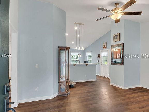 This move-in-ready gem blends modern style with Lowcountry convenience. Step inside to an open living area with premium LVP flooring throughout the living room, kitchen, and hallway. The upgraded kitchen boasts sleek quartz countertops and newer stainless steel appliances, while both the guest and primary bathrooms feature quartz vanities for a touch of luxury. Tasteful updates shine in every corner, and a storage barn provides plenty of extra space for all your essentials. Enjoy a community filled with amenities including a scenic pond, dog park, volleyball and basketball courts, and a playground all perfectly located between Beaufort and Bluffton, just off Hwy 170.