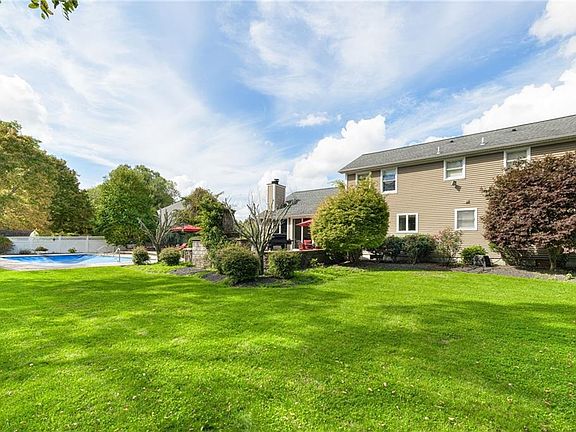 This stunning property is an entertainer's paradise, boasting a magnificent outdoor patio, a stone fireplace, and a spectacular in-ground saltwater pool all surrounded by green space and privacy, abutting 17 acres of conservation land. Step inside to 2,500 square feet of elegance, featuring hardwood floors and crown moldings throughout. The formal dining and living rooms feature beautiful wainscoting and detailed millwork. A dedicated office, a stylish powder room and convenient laundry area add to the home’s thoughtful design of the main level. The heart of the home is the eat-in kitchen, equipped with Cherrywood cabinets, granite counters, and stainless appliances. This space flows into the sunken family room with wood accent walls, vaulted ceilings, and fireplace. Retreat to the second level, where the spacious primary suite awaits, complete with two walk-in closets and an en-suite bathroom with a soaking tub. Two additional oversized bedrooms and another full bath ensure ample space for family and guests. The expansive lower level offers incredible potential for expansion. Enjoy beautifully landscaped grounds, central air conditioning, a newer roof, and natural gas furnace, and hot water heater. Situated in an ideal location, this home is in a top-rated school district, offers easy access to the highway, Martha’s Vineyard Ferry, dining, shopping, the commuter train to Boston, and positioned halfway between the charming villages of Wickford and downtown East Greenwich.