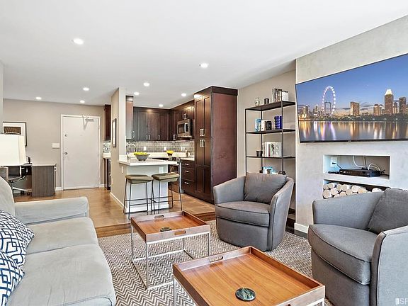 BEST DEAL IN DIAMOND HEIGHTS! Remodeled in 2015 with hardwood floors, all new electrical, plumbing, and soundproof ceilings, new kitchen and bath with heated floors. Modern finishes, designer built-ins, and a smart home system. Enjoy your home office with 2 built-in workstations, 2 wall-mounted Samsung flatscreen TVs, private patio and storage bin, and 1 deeded covered parking spot. Facilities include pool, spa, gym, common room, landscaped grounds and gorgeous city views. Close to Diamond Heights Shopping Center, recreation, public transportation and freeways. Don't miss this one!