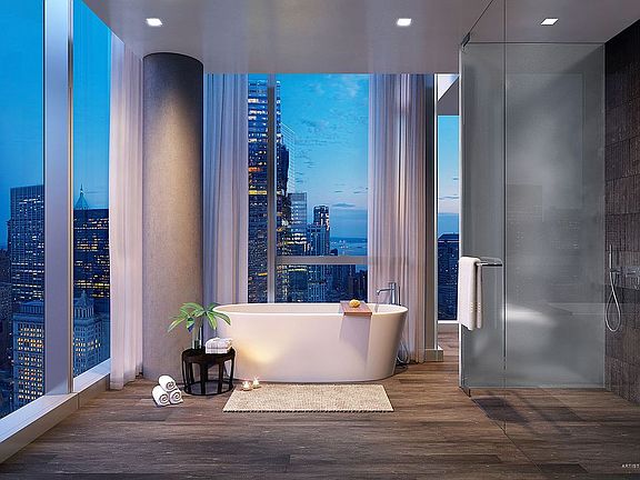 Creative longevity is assured in this Lissoni crafted full floor residence offering 360 degree views of the Iconic Manhattan Skyline. The private key locked elevator opens to a floor to ceiling glass walled gallery with panoramic views to the North, East and West. The Great Room is an impressive 208 × 378 with 11 ceilings and three exposures. This grand scale space is designed for a modern lifestyle with an open floor plan to accommodate entertaining. The elegant Boffi designed Chefs kitchen features floor to ceiling white matte lacquer cabinetry, Corian countertops, a vented Boffi Glass Hood and Gaggenau appliances. The kitchen is enhanced by a generously proportioned sized Butlers Pantry with an additional sink and dishwasher, full height wine climate cabinet, steam oven and warming drawer. The private portion of this contemporary home offers generously proportioned bedrooms graced with windowed ensuite baths. The five-fixture Master Bath is finished with rich Italian Pietro dAvola Lithoverde limestone heated flooring, walls clad in an Italian textured Pietro DAvola RAW limestone designed by Pietro Lissoni for Salvatori with a Stonage free-standing bathtub and double white matte lacquered double vanity custom designed by Italian manufacturer MOMA Design.45 Park Place is an inspirational canvas for the first New York commission of global tastemaker Piero Lissoni; the development also encompasses a plaza and cultural center conceived by Jean Nouvel. The fifty homes are enhanced by three levels of impeccably curated amenities, including full concierge services, a stunning 50-foot pool and spa, state-of-the-art fitness center and yoga studio, private residents lounge, and childrens playroom.