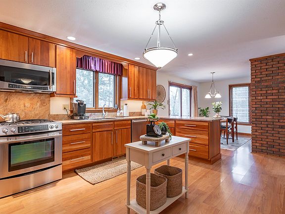 Welcome to your ideal home! This exquisite 3-bedroom, 2.5-bathroom house is situated in a peaceful neighborhood, offering both serenity and convenience. The centerpiece of the home is a contemporary kitchen with granite countertops and elegant cherry cabinets, seamlessly connecting to a dining area with a newer sliding door that leads to a back deck. Enjoy tranquil views of your beautiful backyard and brook. Enjoy a good book by the fireplace with a floor-to-ceiling hearth in the living room or in the first floor office overlooking the peaceful and wooded backyard. The primary bedroom is a true sanctuary, complete with a private bath. Updated bathrooms and recently replaced windows on the driveway side enhance the home's charm. The exterior was recently painted and stained in 2022. Additional features include partially fenced in backyard, an alarm system, a charming farmer's porch, a natural gas outdoor grill hook-up, and a two-car under garage. The finished basement and expansive driveway with plenty of parking. Don't miss this exceptional opportunity! Conveniently located in Birch Hill school district, close to shopping, schools, route 3.