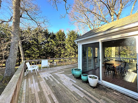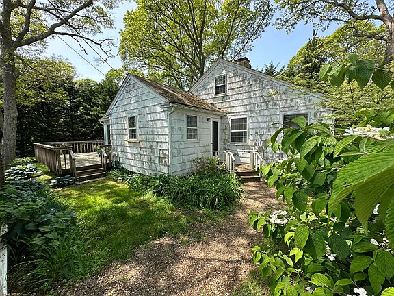 Situated just off of Main Street on the way to West Chop, you'll love this property's classic Vineyard charm and premier location. Take a short stroll to the Vineyard Haven Harbor, easily accessible down Grove Street, to enjoy a swim and watch the boats come and go. Inside this welcoming home, the cheerful kitchen offers ample counter space and is airy and bright. Flowing off the kitchen is a sun room with three walls of sliders that open to a large back deck overlooking the shaded backyard. Connected to the kitchen is a dining room with windows overlooking the deck and backyard. The living room has gorgeous wide plank wood floors, lots of windows, a gas fireplace, and built-in shelving. The primary bedroom suite boasts cathedral ceilings, a three panel slider which opens to the backyard, and a generously sized private bathroom. A second bedroom with a closet and decommissioned half bath is located off of the living room and enjoys afternoon light. A second full bath is off the hallway. Additionally, the detached garage has a finished living space and a half bathroom. This home is located in a great neighborhood with easy access to the harbor, the Vineyard Haven Yacht Club, West Chop Woods, Mink Meadows, the West Chop Club, and downtown Vineyard Haven. This home is located in a great neighborhood with easy access to the harbor, the Vineyard Haven Yacht Club, West Chop Woods, Mink Meadows, the West Chop Club, and downtown Vineyard Haven. **Please note: the bedroom in the finished space of the garage has not been confirmed by the town. The additional square footage added includes the sun room (120 sf) and the finished area in the garage (150sf).