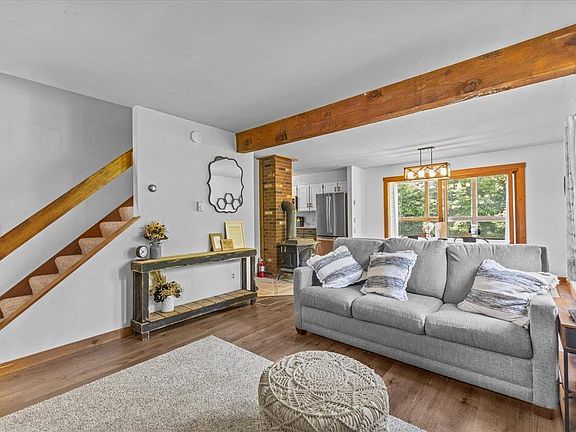 Welcome to 45 Platinum Plain, a charming home nestled at the end of a serene cul-de-sac. Step inside and feel immediately at home. The current owners have worked hard to update the home with modern finishes while maintaining its original feel and design. The living room features a cozy wood-stove that complements the rustic exposed beams. Firewood is included, ensuring you’re ready for those chilly evenings come fall. The primary bedroom is conveniently located on the first floor and comes with new carpet and an en-suite bathroom, featuring a sleek new tile shower, modern vanity, and elegant lighting. The heart of any home is the kitchen, and that's no different here. It boasts new granite countertops, a farmhouse sink, an updated microwave, refrigerator, and fresh tile throughout. It's also plumbed and wired for a dishwasher if desired. Upstairs, you’ll find new carpeting, a half bath, and two additional bedrooms. Step outside onto the lovely deck overlooking a spacious open backyard, complete with your own chicken coop. The large attached 2-car garage features heavy-duty shelving and workbenches, providing ample storage and workspace without compromising room for vehicles. This home is both functional and inviting. To round it out a full walkout basement provides additional storage or the opportunity to finish more living space. This home has so much more to offer; schedule your showing today!