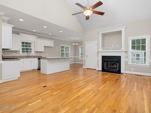 Charming County home built in 2010 with easy one level space, attached garage & detached garage/work shop. Private spot on .69 acres. Enjoy the open living space, kitchen with large island & split bedroom floorplan with Master separate from Bedrooms 2 & 3. Custom cornices for windows are in the closets. Enjoy peaceful life, county only taxes, Duke-Progress electricity!