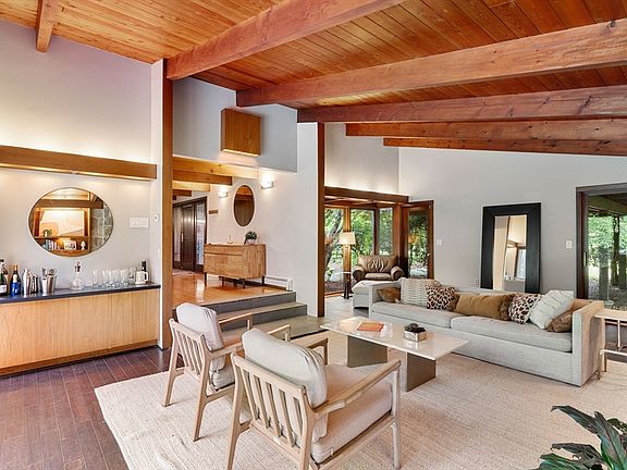This fabulous Mid-Century Modern home in a walk to town location combines the esthetic of simple, clean spaces in an open floor plan that invites nature in through its walls of glass & oversized windows. The inviting gardens are a thoughtfully designed oasis with the feel of a Zen Retreat. Relaxing is easy in sundrenched spaces that combine the elements of nature in it's timeless design. This gem has been the residence of many prominent Medfield citizens over the years & has enjoyed the admiration of the community. It was designed by renowned Architect, Designer & Historical Preservationist Leslie Larson who studied & was inspired by Frank Lloyd Wright. The Open Floor Plan is perfect for entertaining & features beautiful updated bathrooms & two family rooms.The flexible interior lends itself to an ideal space for welcoming clients through a separate street facing entrance, offers opportunity for a guest suite or an AuPair Suite.Buyers looking for an exceptional home will find it here.
