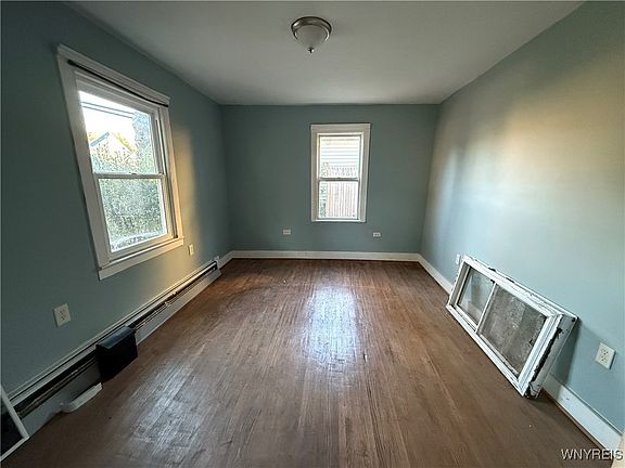 Opportunity knocks in Lockport! This 2-bedroom, 1-bath single-family home offers over 1,300 sq ft of finished space and sits on a quiet street just off Transit Rd—close to shopping, dining, public transportation, and the Erie Canal. The property backs up to a large open park field, offering extra privacy and green space with no rear neighbors. Much of the renovation is already complete, including an updated kitchen with new cabinets and laminate counters, a remodeled bathroom with new tile tub/shower, flooring, toilet, and vanity, newer windows, some fresh paint, and newer roof (age unconfirmed but in great condition). The cozy, low-maintenance backyard is perfect for relaxing or entertaining. Ideal for investors looking for a nearly finished flip or rental, or for a buyer seeking sweat equity and affordability. Sold as-is. Easy to show, vacant, and reviewing offers as received!