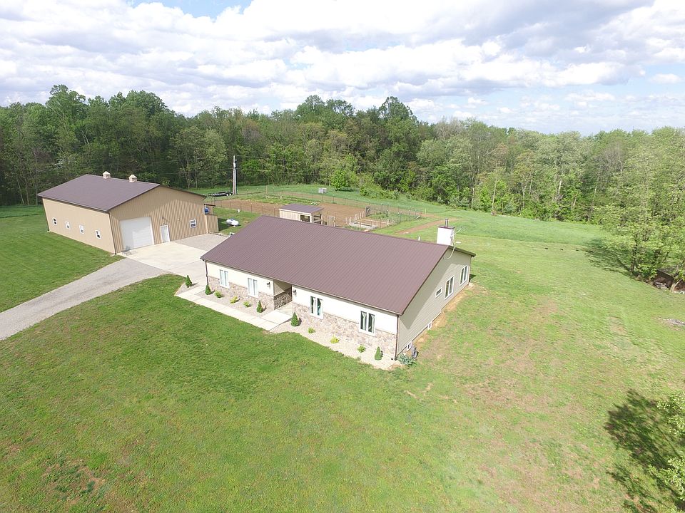 Welcome to your very own wilderness retreat! This beautiful ranch offers a desirable open floor plan concept. Kitchen has 4 x 8 island w/seating, soft close cabinets, SS appliances, double oven, walk-in pantry & amazing wet bar for entertaining. Masterbed suite located separately from other beds & all beds are XL w/deep closets & ceiling fan lights. Solid 2 panel doors & poplar trim Anderson windows, metal roof. Geothermal heat/AC & wood stove. Projector screen theatre room in basement w/surround sound. Whole house generator & 6'' walls. 40x60 pole barn w/12x24 apartment (w/full bath & kitchen) loft storage, XL workbenches, & 15x40 lean to side of barn. 40x80 fenced garden w/greenhouse. The perfect setting w/lots of 4 wheel trails, stream, & right next to Hocking Hill