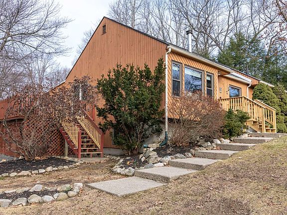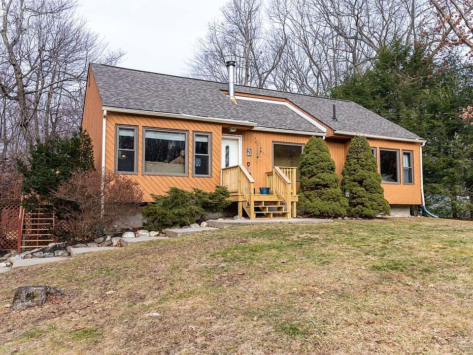 This 3 Bedroom Contemporary home with many recent updates is located in Redfield Estates. The neighborhood offers approximately 67 acres of recreation with trails and a pond. The recently remodeled kitchen offers quartz counters, subway tile backsplash, modern colors and stainless steel appliances. The living room is kept warm with a wood stove and massive brick hearth, it has wood floors and a cathedral ceiling. The front deck was just recently replaced with all new wood stairs & decking. A 3 Season enclosed porch overlooks your level backyard part of your lot totaling over one acre. The lower level has updated carpeting throughout with a recently remodeled 3/4 bath & a Rinnai Propane heater. Showings start 1/22/21