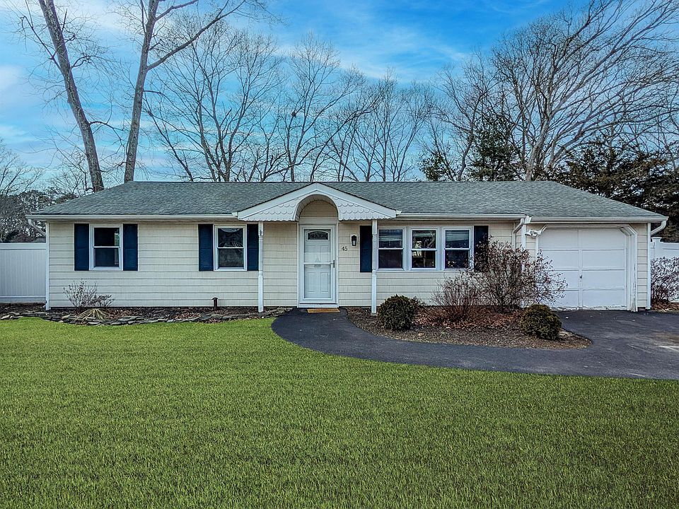 Welcome home to 45 Ridge Haven Dr. This 3 Bedroom, 1 Full bath ranch is the perfect house you have been waiting for. It features a large living room with vaulted ceilings, spacious eat-in kitchen with stainless steel appliances, a formal dining room, 3 ample sized bedrooms, an updated full bath with laundry, as well as an attached 1 car garage that provides plenty of storage space. The big backyard is perfect for entertaining with a large deck and fully fenced yard. With taxes under $10k with the STAR credit, this is one you don't want to miss.