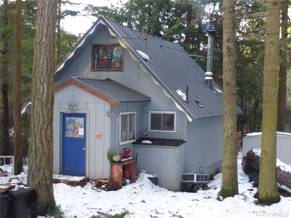 A frame. Exterior painted light blue. Bought from Tom and Tammy Pal 12/2009 for $182K. Exterior is light blue. We remodeled in 2010. Hardwood flooring in the living room. Tile in the entry, bathroom and kitchen. Completely redid the bathroom. New plumbing and from fixtures. Updated kitchen appliances.
