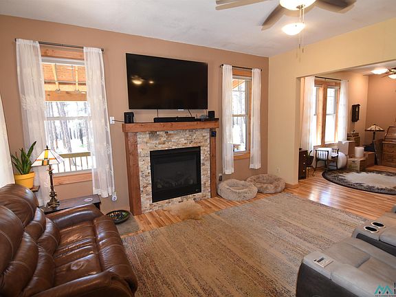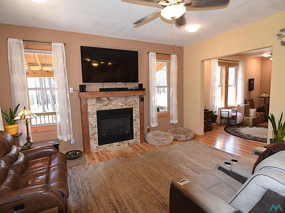 This Cozy home is in a peaceful setting located only 14 miles from Las Vegas. The Home is situated on over 8 acres of land that is fenced in. The 1700+/-sqft home has many features including a 600 sqft wrap around porch to sit out and take in the beautiful views, a 4 car detached garage, a shed, and a 1500+/-sqft unfinished attic that is ready for your personal touch. Pride of ownership is evident as it is a very well maintained home. The back deck is just right outside of the mud room. The flooring throughout the home is laminated wood. Some amenities are a Gas fireplace in the living room, Recessed lighting in the kitchen, Ceiling fans an External 5300 KW generator, and immaculate landscaping.