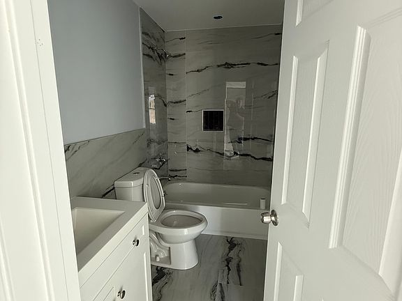 Revitalized Bathroom: Sleek new fixtures, a tub with subway tile, modern vanity, and soft-close storage your daily retreat awaits.