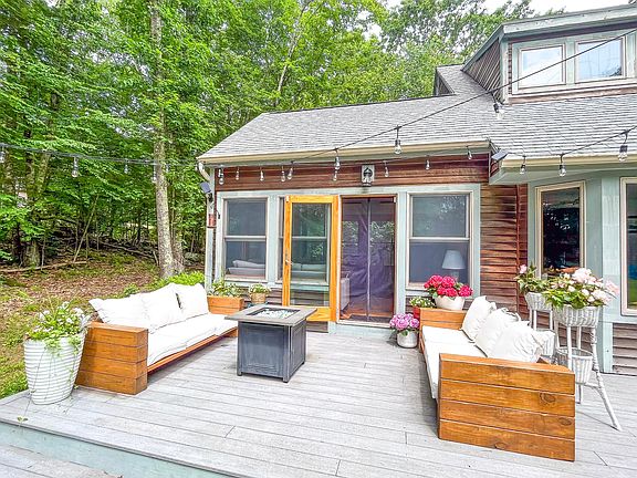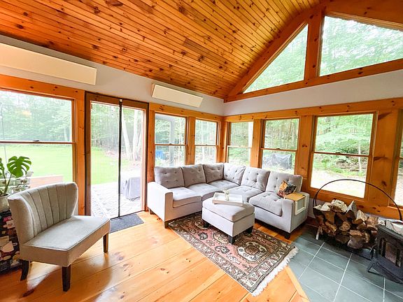 Newly renovated property with an abundance of sunlight, large deck sprawling the entire south side of the house, veggie garden with 4 large raised beds, very spacious kitchen, open floor plan, plank hardwood floor, beautiful sunroom, and lots of outdoor space on 5 acres! The property is very private surrounded by woodland. Newly renovated kitchen has farmhouse sink and 3" countertops with new appliances. Full bathroom has double vanity, large double mirror, rain shower head, new tiling, etc. South facing wall of house is all windows. Such a unique property! Renter is responsible for electric. Renter is responsible for electric. Property is furnished.