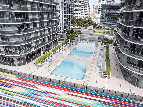 Elegant 2bed/2bath corner condo featuring floor-to-ceiling windows that fill the space with natural light. The expansive wraparound balcony offers stunning views of the Brickell skyline and pool. Beautiful ceramic wood-look tile throughout. The gourmet kitchen showcases Italkraft mahogany cabinetry paired with white stone countertops and backsplash, complemented by premium Bosch and Sub-Zero integrated appliances. Spa-inspired bathrooms include floating vessel sinks, a tub, and a separate shower. Residents enjoy access to world-class amenities, including rooftop pools, a sky deck, spa with sauna and steam rooms, jacuzzi, business center, children’s playroom, & 2 clubrooms. A household membership to the on-site Equinox Fitness Club is also included, offering the ultimate in luxury living.