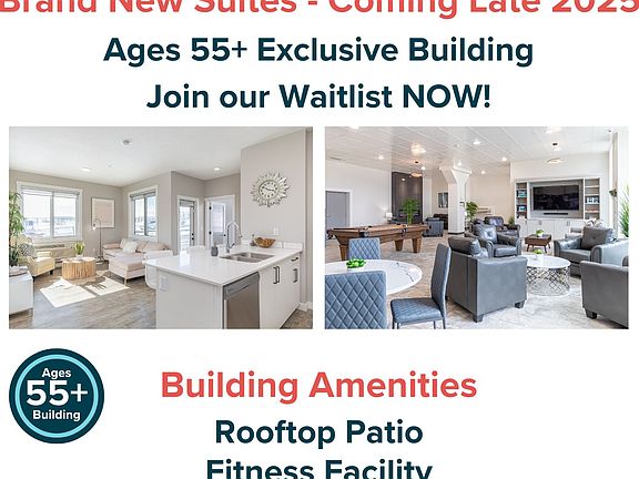 BRAND NEW BUILDING - Quiet Ages 55+ - Pet Friendly - Rooftop Patio - Community Kitchen - Weekly Community Breakfast - Free Monthly Events - On-Site Gym - AC - UG Parking - 2 Elevators - Virtual Tours Available
