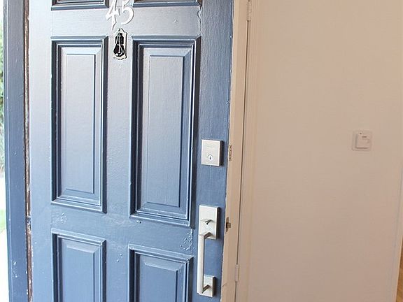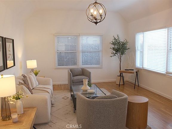 The standalone one-bedroom, one-bathroom guest house at the back of the property features a split-level layout with a fresh, fully repainted interior. The charming kitchen includes custom cabinetry and a wet bar, with new downstairs flooring, updated lighting fixtures, and blinds. The spacious downstairs living area leads to a large upstairs bedroom with original hardwood floors and an updated bathroom with gray subway tile and new vanity lighting. A large private yard—ideal for summer barbecues—has been recently revamped. Separate laundry hookups are also available in this unit, and portions of the driveway have been repoured. This unique property is a blend of classic charm and modern convenience—not to be missed!