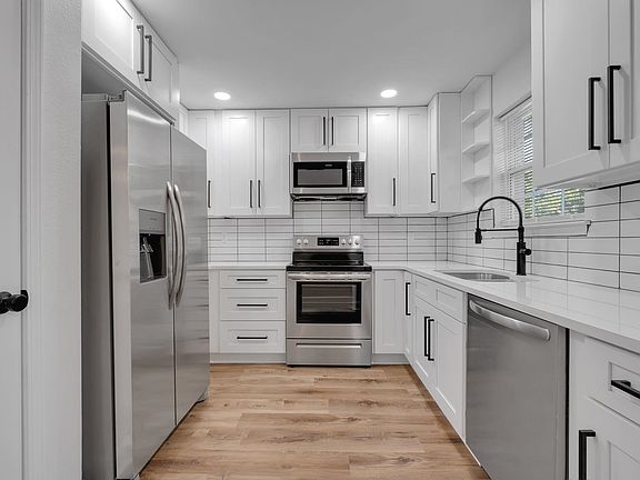 Beautiful renovated 3bed/2bath home with nice size fenced yard. NEW roof and NEW water heater! The light & bright kitchen features all new everything: cabinets, quartz countertops & stainless steel appliances. The stunning master bathroom features new tile, new vanity with double sinks, free standing tub & separate shower. Split floorplan, new LVP flooring, new light fixtures & ceiling fans, covered front porch and 2 car garage has a new door & premium polyurea finished flooring.