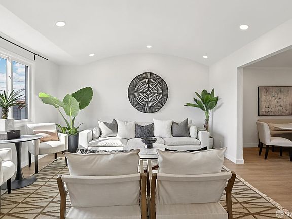 Experience tranquility in the heart of Silver Terrace with this impeccably refreshed three-bedroom, two-bathroom residence. Positioned to maximize sunlight, this home blends contemporary finishes with a timeless layout. The open-concept main level features a sun-drenched living area, a chef's kitchen with new stainless steel appliances, and a seamless flow to the dining area. This level surrounds a sunroom/ multi-purpose space currently featured as a home office. Both upstairs primary bedrooms offer king size spaces and a spa-inspired bathroom, while an additional space downstairs provides flexibility as a guest room, home office or in-law suite with another sleek bathroom. The massive custom closet offers stylish storage with room to grow. Outdoor living shines with a beautifully landscaped backyard and deck ideal for gardening or grilling. Complete with ample garage parking and easy access to the city's vibrant activities, this home is a rare opportunity to own a piece of San Francisco. Come see how great life can be in Silver Terrace!
