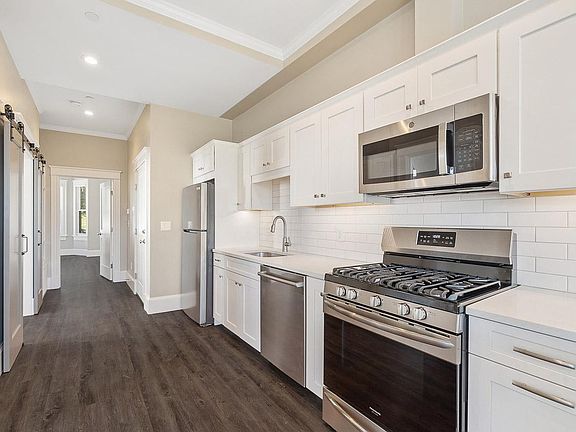 This is truly a spectacular, one-of-a-kind property! Units are really high-end and each deck has views of Boston! We did a complete gut-rehab on this Victorian Mansard.... it is a beautiful one-bedroom unit with the second room having sliding barn doors... perfect for an office. The property is in a unique location - up on a hill and at the end of a street - so there aren't neighbors behind us or beside us on one side - allowing great views and privacy. Everything was replaced, including new heating and cooling systems, high-end insulation which means lower utility bills, all new plumbing, electric, windows, etc. The kitchen has modern white Shaker cabinets, Quartz countertops, stainless steel appliances, and a peninsula that fits 2 barstools. There is a "coffee bar" area and a built-in pantry. The bathroom has a beautiful white and grey floor tile with timeless white subway, custom vanities, and built-in shelving for storage. There is a large, private deck off the living room/kitchen with a view of Boston. This is the reason we fell in love with this building! The office has Barn doors leading into the office. The entryway has a custom coat rack/bench. The unit comes with full size LG Washer/dryer. Parking in the driveway for one car at $120/month. Lease start date is flexible for 8/15-9/15. We are looking for excellent tenants who would be willing to take great care of the unit. You must have good credit. Tenant pays for utilities.