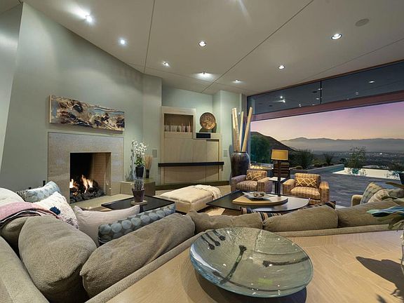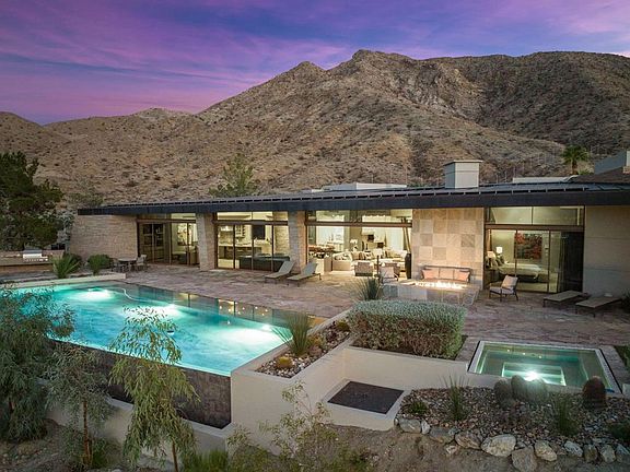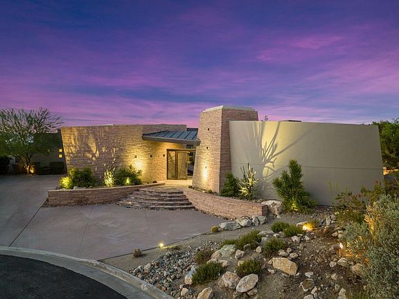 This beautiful contemporary hilltop home is nestled in the exclusive Mirada Estates. The residence is positioned on one of the highest custom lots in Mirada, soaking in panoramic views of the valley below. This 4 bedroom home is in a truly ideal position, surrounded by the beautiful mountains and the Bighorn nature preserve affording tranquility and privacy. The architect, David Prest, created a design that maximizes the spectacular views from a variety of indoor and outdoor living spaces. The entryway into this property is a true wow experience, with glass entry doors exposing the vistas over the beautiful pool and the spectacular valley floor in the distance.The updated and renewed decor by the present owners makes the house look like it was just built. The great room, with its incredible bar, is one of the best places to view the lights of the desert floor at night.The private primary retreat is superb, with a separate area for an office, and a huge elegant bath. The charming attached guest house has a living area and bedroom giving guests their privacy, yet just steps to the main house.The home has a massive owned solar system, large patios in the rear yard and an infinity edge pool. Being sold furnished per inventory. A benefit of being a homeowner at Mirada Estates are the additional privileges offered at the neighboring Ritz Carlton including reduced dining rates, with spa and fitness privileges..