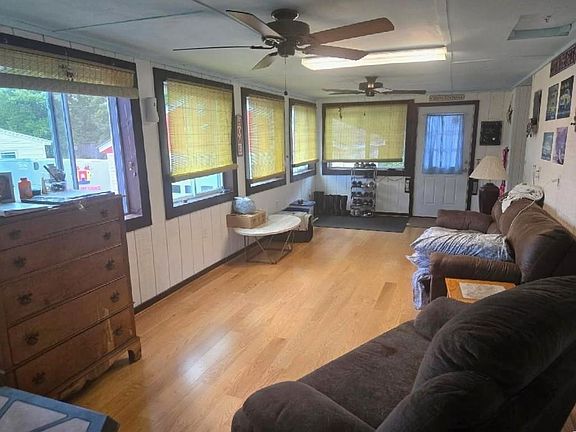 Over 1500 sq ft of spacious one level living on a dead end street! Wait until you see the kitchen! The primary bedroom and bath is also big & roomy with a separate tub and walk in shower. Two more bedrooms, and a bathroom with walk in tub. The laundry room, has counter space, cabinets, and it's own deep sink. Two pellet stoves warm you during the colder seasons using an average of 4-6 tons annually and only about 150 gal of oil. For summer fun check out the surprise bunk rooms on the back of the garage, with bunk beds , heat, electric, a/c and wifi. 200 amp service in the garage. Come and see this spacious & special place!