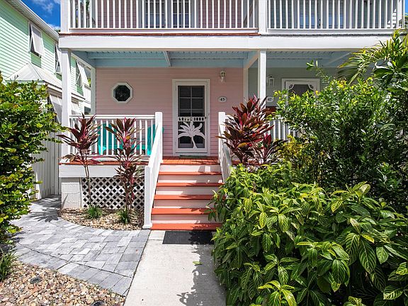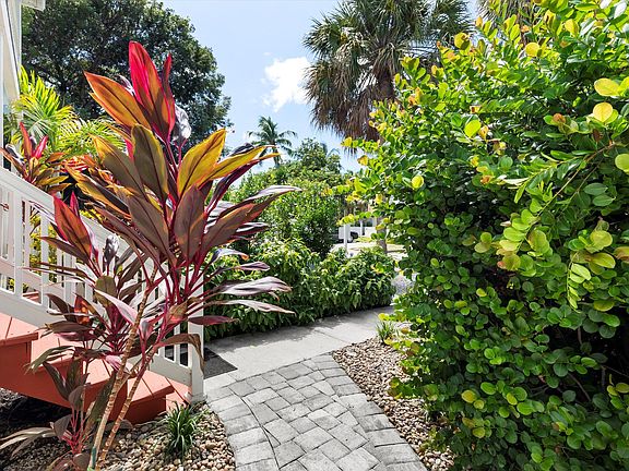 Tucked w/in the gated Key West Golf Club community, this beautifully maintained townhome offers comfort, privacy, and classic Key West charm. From the moment you step onto the property, it feels like ''home.'' Beautifully landscaped front yard, river rocks, gray brick, solar lighting & vibrant tropical foliage. Impeccably maintained. Inviting, freshly stained front porch, cozy palm tree screened door, sparkling white trim work, fresh exterior painting! The laid-back island lifestyle, just waiting for you. The open-concept living/dining area flows seamlessly to a spacious screened rear porch--perfect for morning coffee, outdoor dining, or simply enjoy the diagonal view w/serene evening lighting @ the gorgeous lagoon-shaped pool (down a short foot path), tropical waterfalls in the distance, and mature, lush tropical landscaping. Attractive gray brick surrounding the property. Your added 2' in width for the home when compared to the smaller homes makes a huge difference in accommodating a larger dining table. Living space expands, too. A well-designed kitchen, all matching, new updated GE stainless appliances, generous counter space makes cooking and entertaining a breeze. Upgraded LG front load brushed dark gray washing machine/dryer is concealed behind louvered doors. There is a peaceful feeling w/the interior of the home painted in a welcoming, soft, light seafoam blue, reminding you of our crystal-clear turquoise waters surrounding our island. Beautiful hardwood steps/hallway are a lovely touch. Upstairs, you'll find two spacious bedrooms, each with its own en-suite bath. The primary suite opens onto a private screened veranda overlooking the neighborhood's tropical scenery, creating a true retreat. The guest bdrm. has a large closet affording additional storage. French doors lead to a cozy balcony on the front facade, offering a picturesque view of the peaceful Spoonbill Way. Quiet 1-way lane, privacy, yet easy access to Old Town, the beaches, shopping & dining.