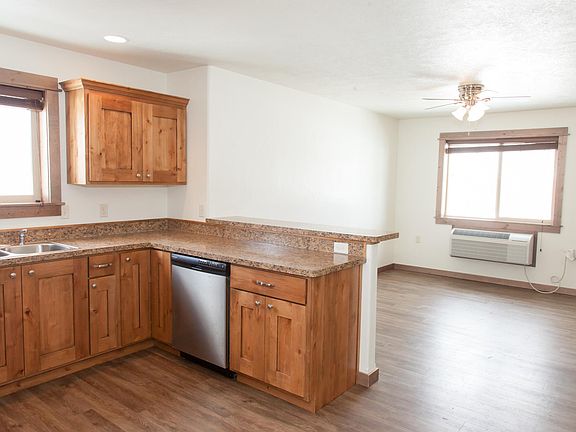 Newer 2 bedroom 1 bath apartments. Washer and Dryer hookups, A/C in main living area, and a one car garage. Landscaping is maintained and sidewalks shoveled. Landlord pays water and garbage. Tenant responsible for other utilities. Excellent location near shopping. Owner pays water and garbage. Tenant pays other utilities