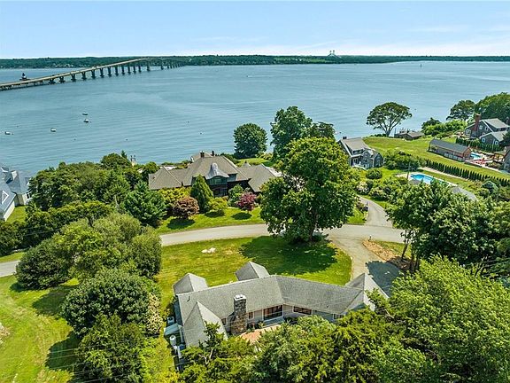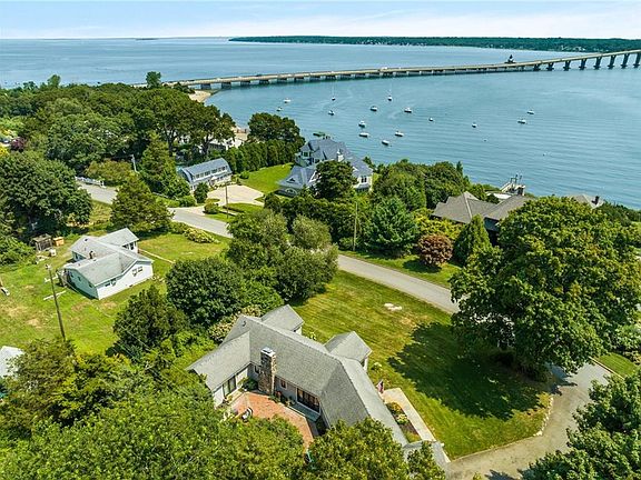 Spectacular coastal home in “Rhode Island’s best kept secret” – Plum Beach! A completely renovated Ranch where contemporary style meets traditional charm. Enjoy water views from the open concept kitchen with a wall of glass that leads out to the blue stone and brick patio for outdoor living at its best. The kitchen also includes vaulted ceilings, a large island, quartz countertops, luxury Thermador appliances, and a Sub-Zero refrigerator. An adjoining eat-in dining area features a built-in wet bar, coordinating with the island cabinetry. A formal dining room just off the kitchen with views of the coastline and custom built-ins. The living room is welcoming and cozy with built-ins and a beautiful brick fireplace providing the perfect place to unwind. North wing of the house, the primary ensuite includes custom built-ins that offer the perfect set up to work from home as well as glass sliding doors that lead to the outdoor patio with mature landscaping, surrounding stonewalls, an outdoor shower and a privately located hot tub. The home also includes an additional bedroom, a second full bathroom with a half bathroom off the mudroom and an adjoining laundry room. An existing staircase off the mudroom to the loft over the garage for possible expansion for living area/bedroom. The lower level offers a bonus space for guests. A short walk or golf cart ride to the beach, boating, and tennis courts on Narragansett Bay. Minutes to downtown Newport and train to NYC and Boston.