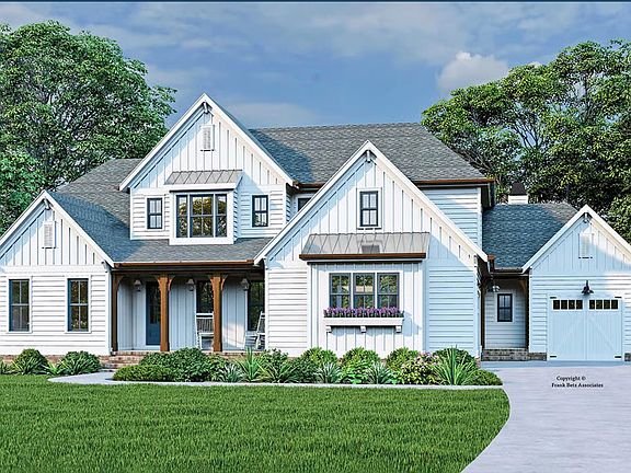 Two fireplacesAbundant windowsBordered by conservation landVaulted covered porchLower-level walkoutFirst-floor primary suiteOpen-concept plan