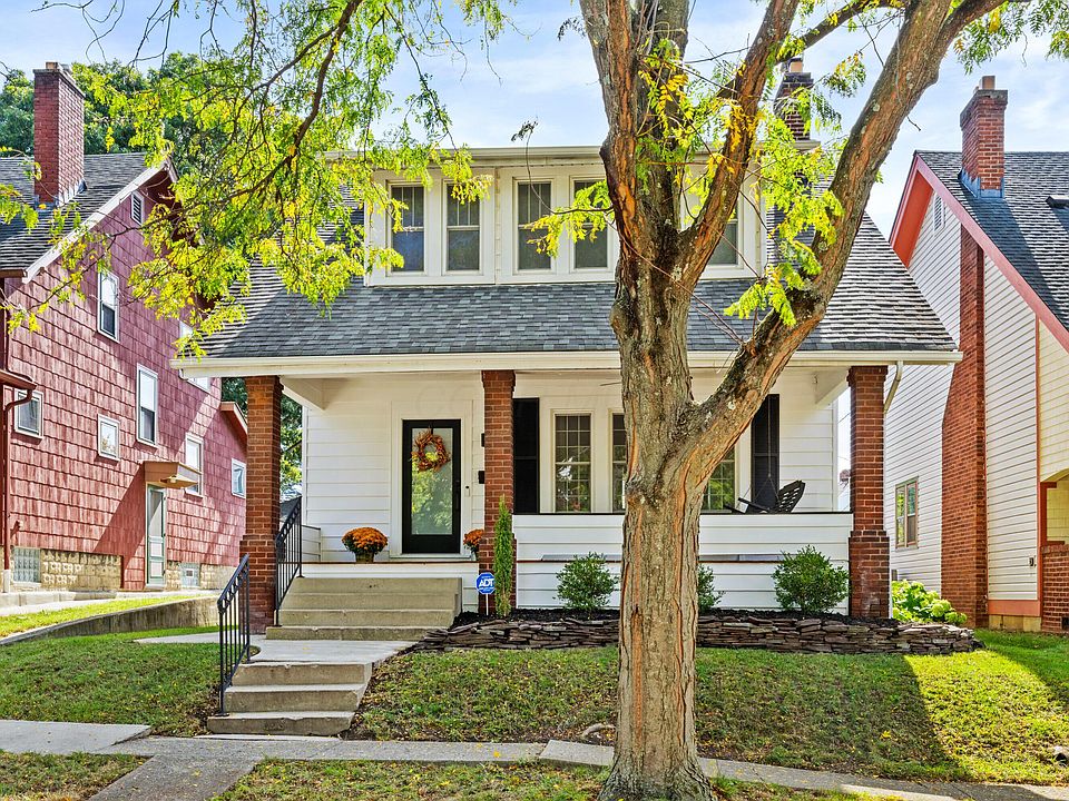 RARE FIND in Clintonville! This one checks all the boxes; charm, updates, and those rare Clintonville features you never see! Just steps from your favorite shops and restaurants, this stunning two-story home blends 1920s character with modern style. Step inside and prepare to be impressed! The original hardwood floors (in amazing condition!) flow throughout the main level. The front living room, currently used as a large dining space, brings the wow factor the moment you walk in, complete with a cozy fireplace and custom built-ins that make the space shine. The kitchen is a total standout with updated cabinetry, new quartz countertops, stainless steel appliances, and tons of storage. Upstairs, you'll find 3 spacious bedrooms plus an office and 2 full bathrooms, including a rare en-suite! The primary suite is huge and flooded with natural light, featuring multiple closets and a stunning new bathroom with custom tile floors and a large walk-in shower. The finished third floor offers extra flex space, perfect for a guest suite, playroom, or creative studio. And the finished basement adds even more living area with a family room, walk-in pantry, second office, laundry room, and storage galore. Outside, enjoy a beautifully landscaped, fully fenced backyard with a large deck made for entertaining, or just relaxing with a glass of wine after a long day. A detached 1-car garage provides even more storage. With fresh interior & exterior paint, new windows, light fixtures, and so many thoughtful updates, this Clintonville gem is truly one-of-a-kind. Don't miss your chance to call it HOME!