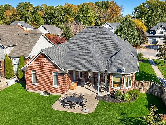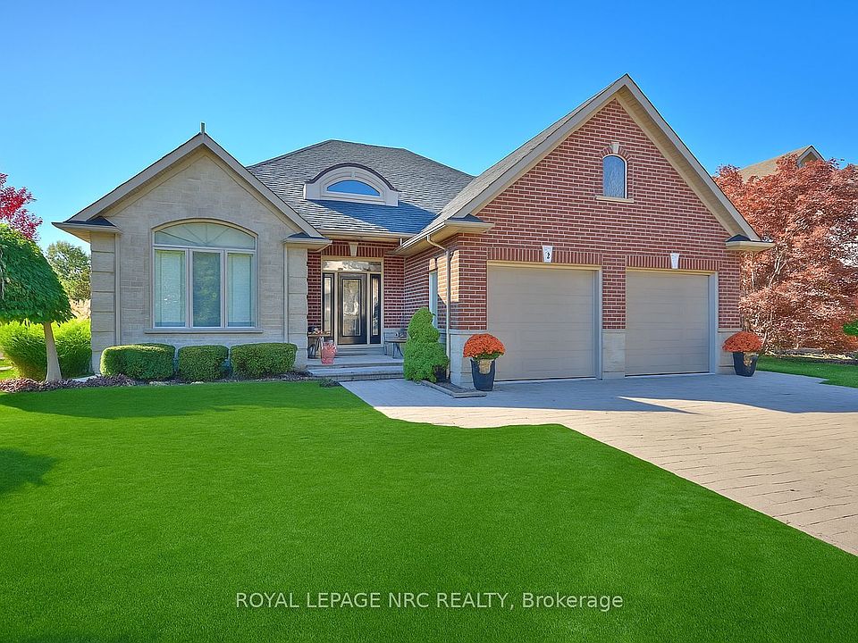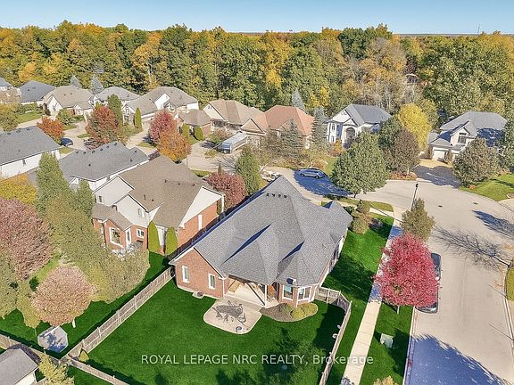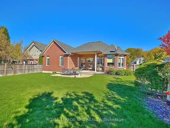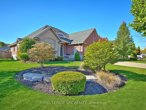 SET UP NICE!! Built by Mabo Westside Construction Ltd., this former Linden model bungalow offers timeless quality, elegant design, and beautiful curb appeal with its combination of brick, stone, and stucco finishes.Featuring an oversized double garage and an impressive 1,200 () sq. ft. covered patio accessible from both the kitchen dinette and the primary bedroom-perfect for entertaining family and friends or simply enjoying a peaceful evening under the stars.With just shy of 2,300 sq. ft. above grade plus approximately 1,000 sq. ft. of finished space below, this home offers versatility and comfort for today's lifestyle.Step inside to soaring 9- and 10-foot ceilings, a welcoming foyer with striking curved wall and wrought-iron railing, and a spacious Great Room featuring a detailed cove ceiling, pot lighting, a centre gas fireplace, and immaculate maple hardwood floors.The chef's kitchen boasts quartz countertops, a tumbled marble backsplash, and a bright dinette overlooking the fully fenced backyard. A formal dining room sets the stage for special gatherings, while a front flex room easily serves as a home office, den, or extra bedroom.Down the hall, discover another generous bedroom, a full 4-piece bath, and the primary retreat tucked privately at the back of the home with a 4-piece ensuite featuring a walk-in glass shower. Main-floor laundry with garage access adds convenience.Downstairs, take the party to the fully finished lower level with in-floor heating, a wet bar with seating for four, a corner gas fireplace, and a projector with automatic 92" screen and 8 built-in speakers-the ultimate entertainment space! A fourth bedroom, 3-piece bath, and three large storage rooms complete this impressive lower level.Rounded corners, quality finishes, and attention to detail throughout make this home truly special-set in one of Fonthill's most desirable neighbourhoods.Who will be the lucky one?