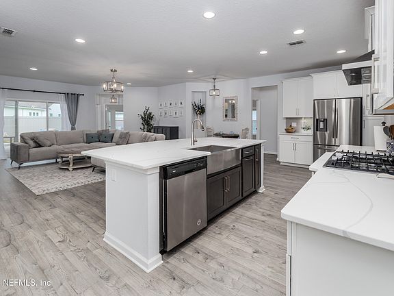 Immaculate 4BR/3BA/3-car garage home in Shearwater - The Falls! This spacious 2,754 sq ft layout features a desirable 3-way split plan, first-floor flex space, formal dining room and dedicated office. Stunning wood-look tile, custom accents, and built-in media center create a modern yet warm interior. Gourmet kitchen offers quartz countertops, gas stove, open-concept island, oversized walk-in pantry (11' deep)!, and butler station. Retreat to a luxurious primary suite with double walk-ins, dual vanities, super shower & garden tub. Enjoy outdoor living with a covered paver patio, summer kitchen, natural gas grill, firepit, & fenced yard. Additional highlights: pool bath, gas tankless water heater, central vac, security system, water softener, and separate laundry. Low HOA, Property insurance under $100 month! Great location in St Johns County —near shopping, lots of options for dining out and new major retailers. Residents of Shearwater enjoy new top-rated K-8 schools in the community!