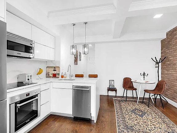 This apartment was recently gut renovated, featuring beautiful hardwood floors, exposed brick, and a new, high end kitchen and bath. It gets fantastic natural light and is extraordinarily quiet as the walls feature extra noise installation. Through the wall A/C has been installed, and the casement style windows are brand new. The living room has space for a small dining table or a desk, and the bedroom will comfortably fit a queen bed. Enjoy double exposure (south and east) in the bedroom & and a windowed en-suite bathroom.