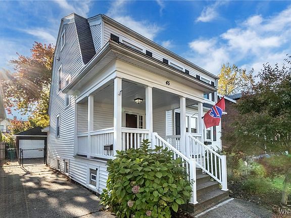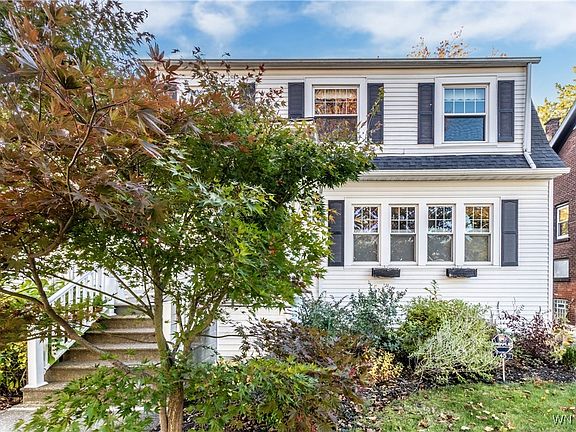 Wonderful 3 bedroom, 1.5 bath Colonial situated on one of South Buffalo's most desired streets! This well maintained and charming property is ready to move in. The open front porch is perfect for summer enjoyment. The entry foyer leads to a large living room with gleaming hardwood floors and gas stove. Newer kitchen features granite countertops and stainless steel appliances. Updated 1/2 bath off kitchen and back stairs. Formal dining room has large window that overlooks beautifully landscaped fully fenced backyard. Hardwood floors and great built-ins are just one of the pluses of upstairs. Full updated bath. Some newer windows throughout, new roof in 2017, newer HWT, updated electrical, full dry basement with glass block, lots of storage, 1 car freshly painted detached garage and much more! Convenient and within walking distance to all that South Buffalo has to offer!