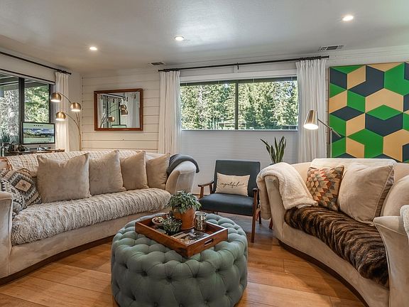 Fully remodeled & move in ready 4-bedroom, 2-bathroom home with fully fenced back yard on the corner of Tyrol & Innsbruck. Very convenient location with easy access to skiing at Eagle through Camp High Sierra (so you don’t have to deal with parking) or hop on the shuttle at the bottom of the street. Great place to start your MTB ride up to Main via Juniper to Paper Route. Just a quick jaunt down to the Village for those who like that kind of thing! Metal roof, luxury wide plank vinyl, pellet stove, LED lighting throughout, bar sink and fridge, fully landscaped yard, full irrigation, lawn, shrubs, rock pathway, 6' fence for backyard, upgraded SCE service panel, new sub panel, new hot tub, new garage door opener, remodeled bathrooms w/ new tile showers, plumbing, toilets, and vanities, new FAU w/ WiFi controls, new tankless water heater, new light filtering cellular shades.