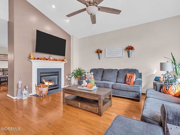 Step into comfort and style with this beautifully maintained rare Wellington model with a full basement in the Renaissance! This elegant home features gleaming wood floors throughout. The living room boasts a double sided gas fireplace, shared with the adjacent family room, which showcases a vaulted ceiling and plentiful natural light. The eat-in kitchen has newer features including granite counters, backsplash, and updated appliances. It also has a vaulted ceiling, a breakfast counter, and sliders leading to a large deck with beautiful nature views. A formal dining room provides the perfect setting for hosting family and guests. The primary suite is complete with a double vanity, tub, and separate shower. This home has a full basement and 2-car garage offer extra storage. The house was freshly painted and there is newer HVAC. This home also has natural gas baseboard heating! This home is move in ready! Great location on a private cul-de-sac and backed to peaceful woods...The Renaissance community has a clubhouse, pool, golf course, tennis courts, fitness center, and more, all designed to support an active and fulfilling lifestyle. Don't miss this chance to live in one of the area's most popular 55+ communities!
