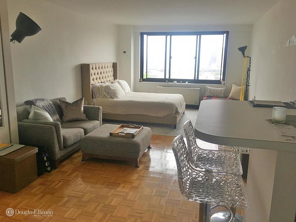 Bright and spacious, newly renovated studio with gorgeous midtown views. The apartment features a separate kitchen with full size appliances including dishwasher and microwave, tremendous amount of closet space and beautiful floors. 24hr doorman building prewired for cable and high speed internet, laundry room in the building and parking space available. Minutes from express train stop on the red line 2 & 3 trains. Only 15 minutes to Times Square. Restaurants, grocery shopping are all nearby. Please contact to set up a viewing and don't wait to act on this deal.