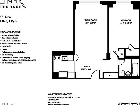 With a Northern exposure, this high floor 612 square feet one bedroom apartment has a large living room. With public transportation a short walk away (the 2 & 3 trains are one block away) this apartment is ideally located. The amenities located in the building include a full-time doorman and a laundry facility. Parking spaces are available on-site for an additional cost.