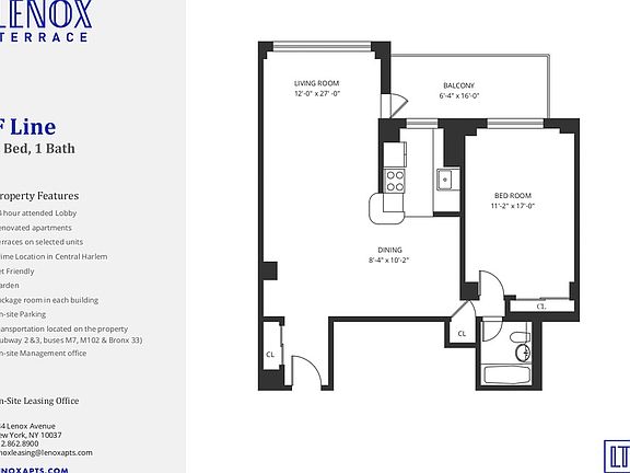 ONE MONTH FREE AT THE START OF THE LEASE!! $500 Electricity concession for a lease signed for January 1st start date. This top floor unit has a beautiful view of the Manhattan skyline and the east river. This one bedroom, one bathroom apartment. With several closets, large windows and an ample kitchen, this apartment is one of a kind. Our Property is nicely placed between the Harlem River Walk way and St. Nicholas Park. Our apartments boast of space, luxury, and charm while providing outstanding views in high rise buildings. Our with courteous uniformed 24hr doormen, a will accept packages and announce guest and delivers. With 24 hr doormen - Parking available at competitive rates - close proximity to St. Nicholas park and Harlem River walk way. - Minutes to the 2/3 express; convenient to the A/B/C/D - Neighborhood hotspots include Renaissance restaurant, Tios Bistro, BK lobster, Red Rooster and many more great restaurants, Bars and Cafes. - A Nice 10 min Walk or 1 short train spot away from Whole foods, Magic Johnson Movie Theaters , Foot locker, House of Hoops and Marshalls