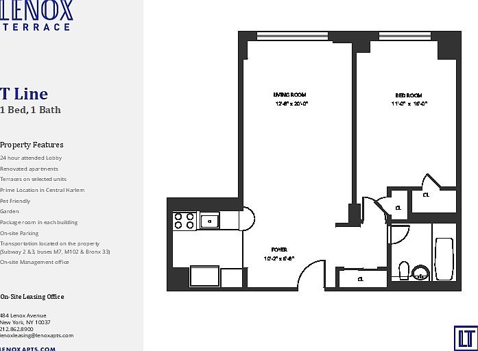 With a Western exposure, this 612 square feet one bedroom apartment has a large living room. With public transportation a short walk away (the 2 & 3 trains are one block away) this apartment is ideally located. The amenities located in the building include a full-time doorman and a laundry facility. Parking spaces are available on-site for an additional cost.