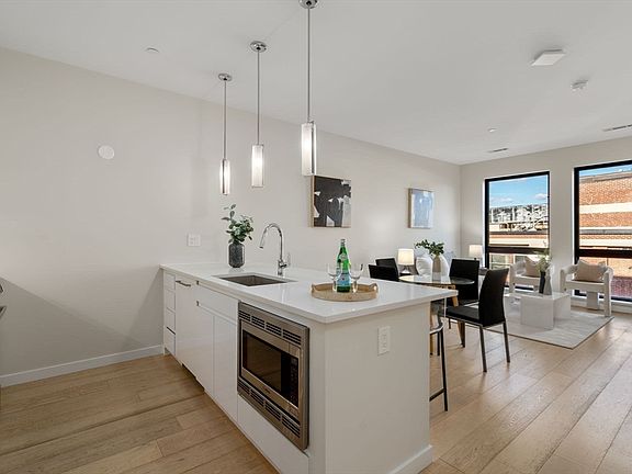 Live Chic in South Boston’s desirable PORT45 building, just steps to the South End, and Seaport District. This stunning home has the perfect blend of quality and functionality, with an open kitchen/living concept. The sleek kitchen has Caesarstone countertops, Bosch appliances, and counter seating. The bedroom has a walk-in closet and a luxury marble style bathroom with a tiled, glass encased shower, and linen cabinet. Additional features include 9 ft ceilings, European white oak floors, in-unit Bosch W/D laundry, electric black-out bedroom shade, state-of-the-art home integration technology, and a deeded garage next to the EV charging stations. This Silver LEED Certifiable building offers a grand lobby entrance with part-time concierge, fitness center, common area Wi-Fi, bike sharing & storage room, pet spa, dog run and a club room with roof terrace and gas grill. Dream commuter location, a few blocks from the Broadway Red Line to MGH, MIT and Harvard, minutes to Logan and I-93/I-9