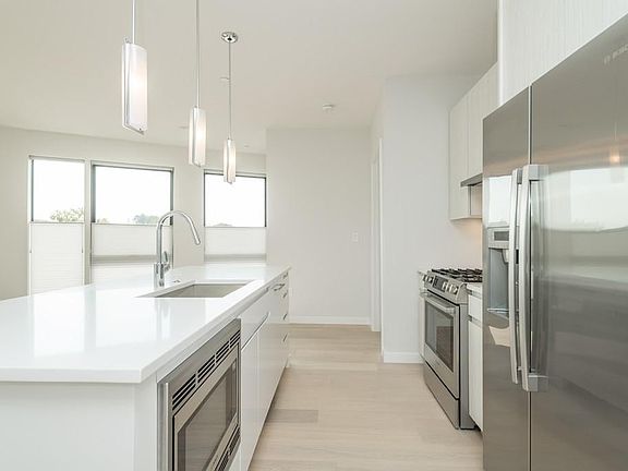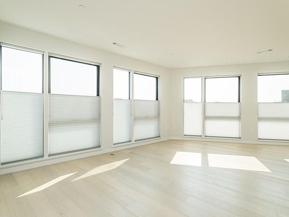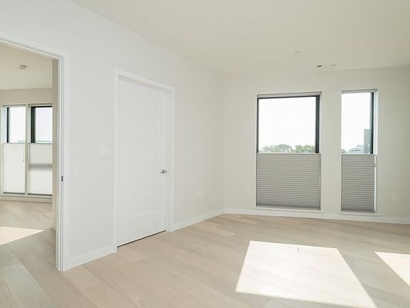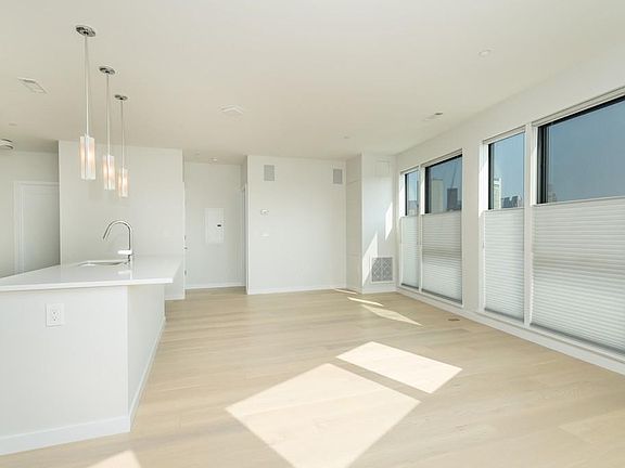 Unique, sunny corner apartment in a new construction building. This bright corner home offers a large, contemporary living space with 2 bedrooms and 2 full bathrooms. Open concept floor plan includes a sleek kitchen with stone counters, stainless steel appliances including dishwasher and gas cooking, and large island with convenient breakfast bar. This opens to living/dining area with plenty of natural light. Two good-sized bedrooms each with a walk-in closet and attached full tiled bathroom. In-unit state-of-the-art home integration allows you to achieve a seamlessly sophisticated lifestyle. Amenities include access to a private/assigned roof deck with panoramic views, concierge/superintendent, grand lobby with seating areas, common area video surveillance, large fitness center, club room, common terrace with gas cooking, elevated courtyard, garage with access to charging stations, bike storage room, and bike sharing program. One garage parking space included with rent. Available 1/1