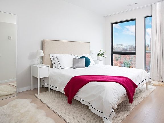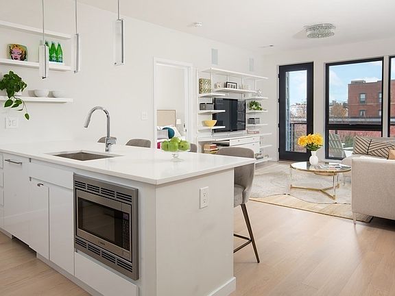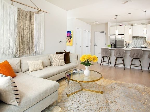 Rarely available 2 bedroom, 2 full bath home at the award winning Port45. Enjoy the ease of amenity rich full service living, ideal floor plan, exceptional in-unit storage and coveted walk-to-all location. This chic, bright home offers an airy open living/dining room with glass sliders to private balcony. The crisp modern kitchen with island bar seating is equipped with top-of-the-line Bosch appliances and amble white cabinetry. Over sized primary bedroom suite offers a large walk-in closet and luxurious spa bathroom with double sink vanity, Generous second bedroom ideal as a home office. Custom blinds, hardwood floors and smart home technology throughout. Amenities include concierge, gym, roof deck, terraced clubroom, pet spa/dog run, EV car chargers and one deeded garage parking spot. All this at 2018 pricing with low monthly fees.